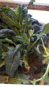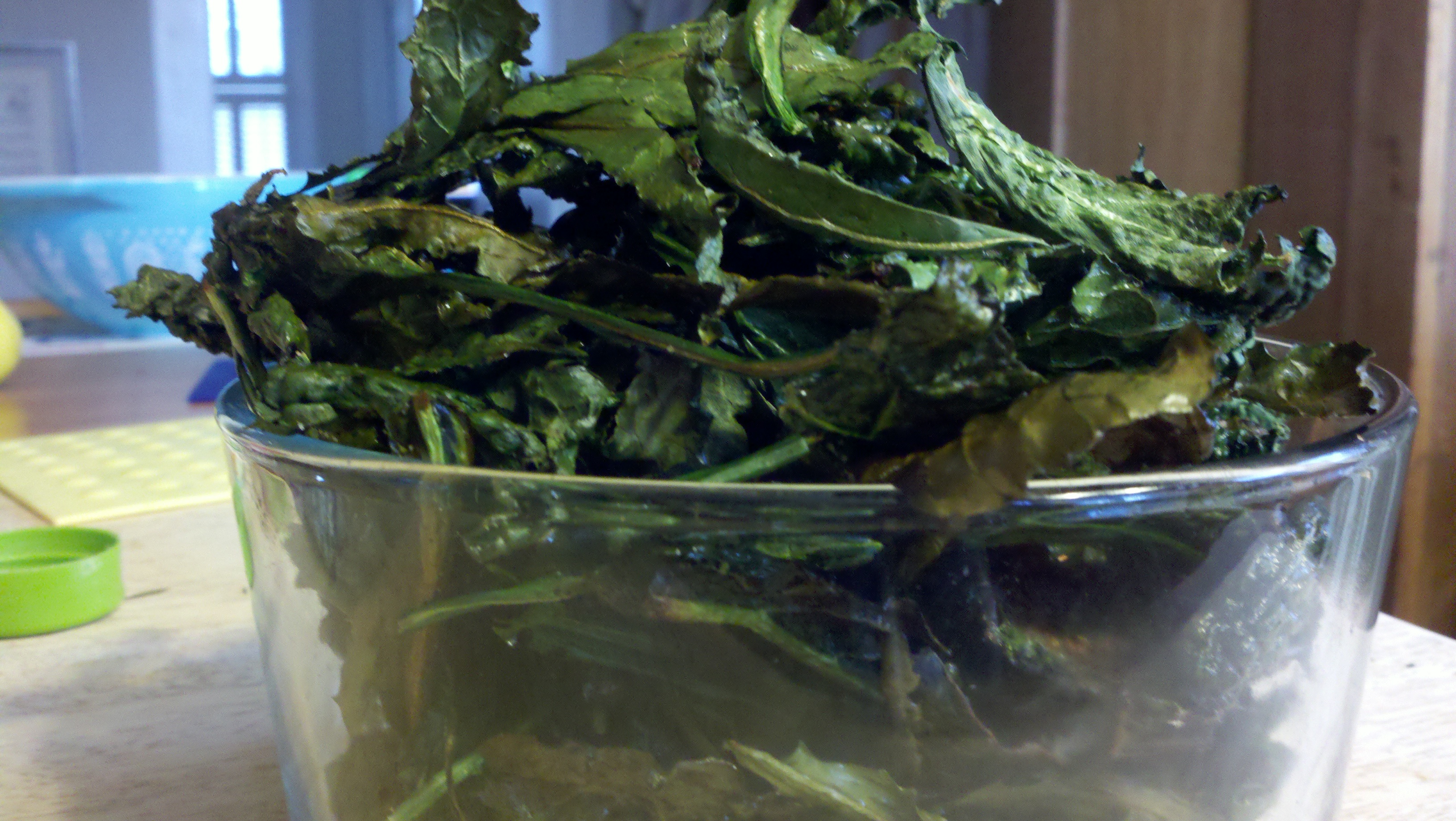 I’d posted recently that my dinosaur kale was nearly done….there were still four more plants left in the raised beds.  Fortunately, the article that my neighbor gave me included a recipe for kale chips.