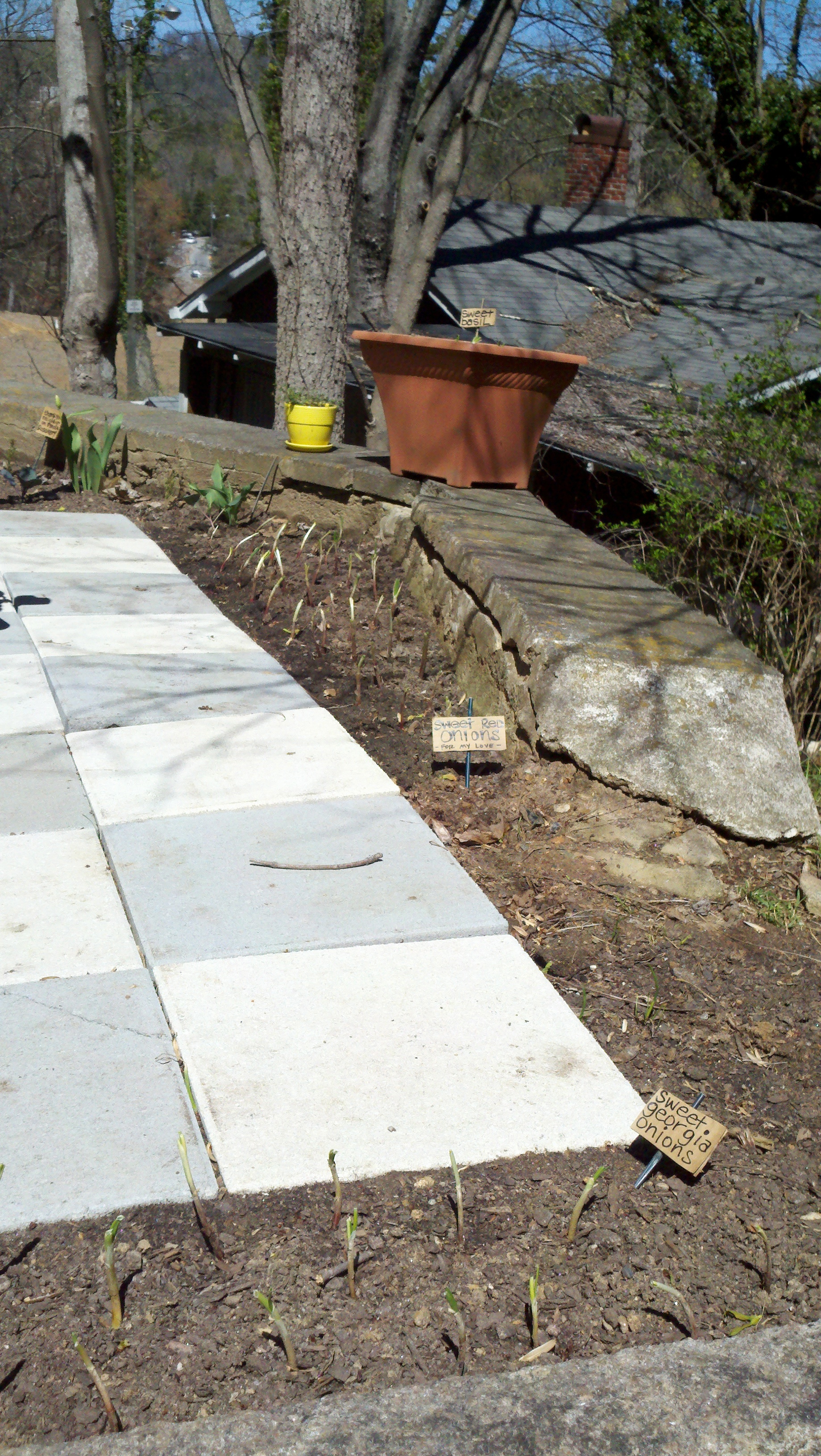 I asked them if it was OK if I follow their garden’s progress through the season on my blog and we got a chuckle out of the idea that they’ll have pressure to keep the garden going strong. It’s the same kind of “pressure” I felt when James and I first started gardening in the front yard — I felt like we’d better keep the weeds out and everything looking good, while I hadn’t been so concerned about those things when the garden was behind the house.
