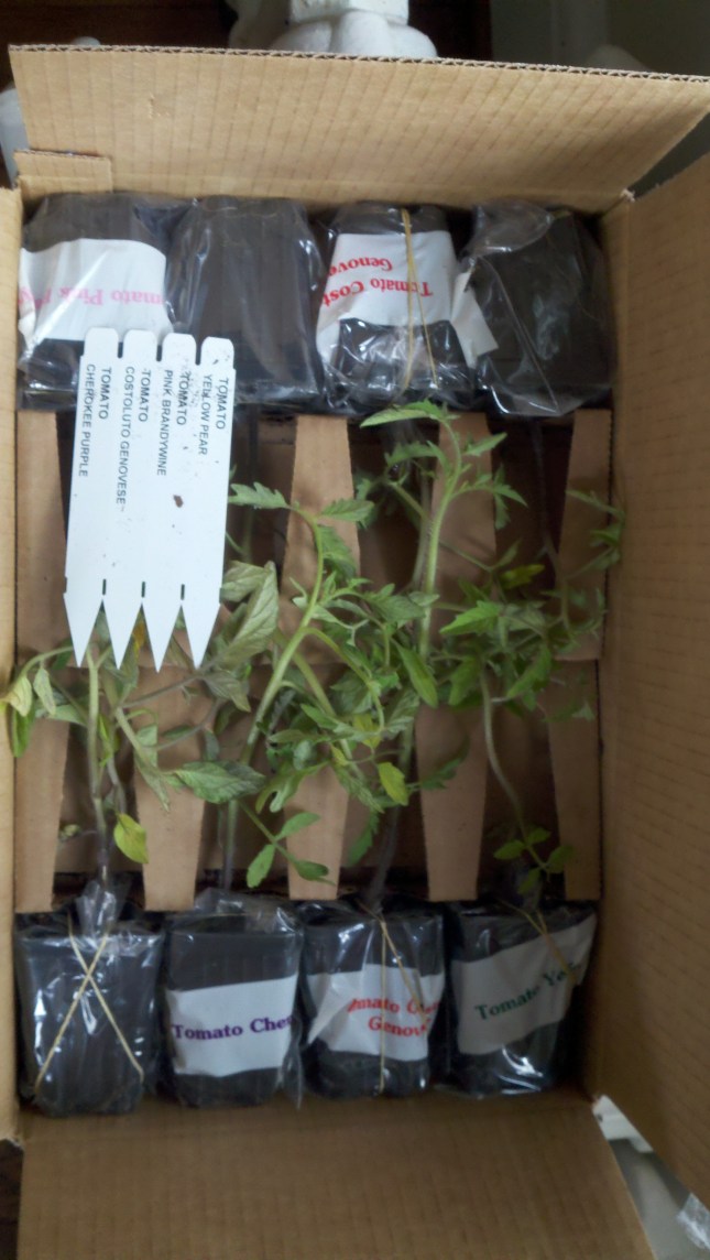 It’s so weird to me that tomato plants can be sent through the mail. They all arrived looking fairly healthy, though. And they came with tags too.
