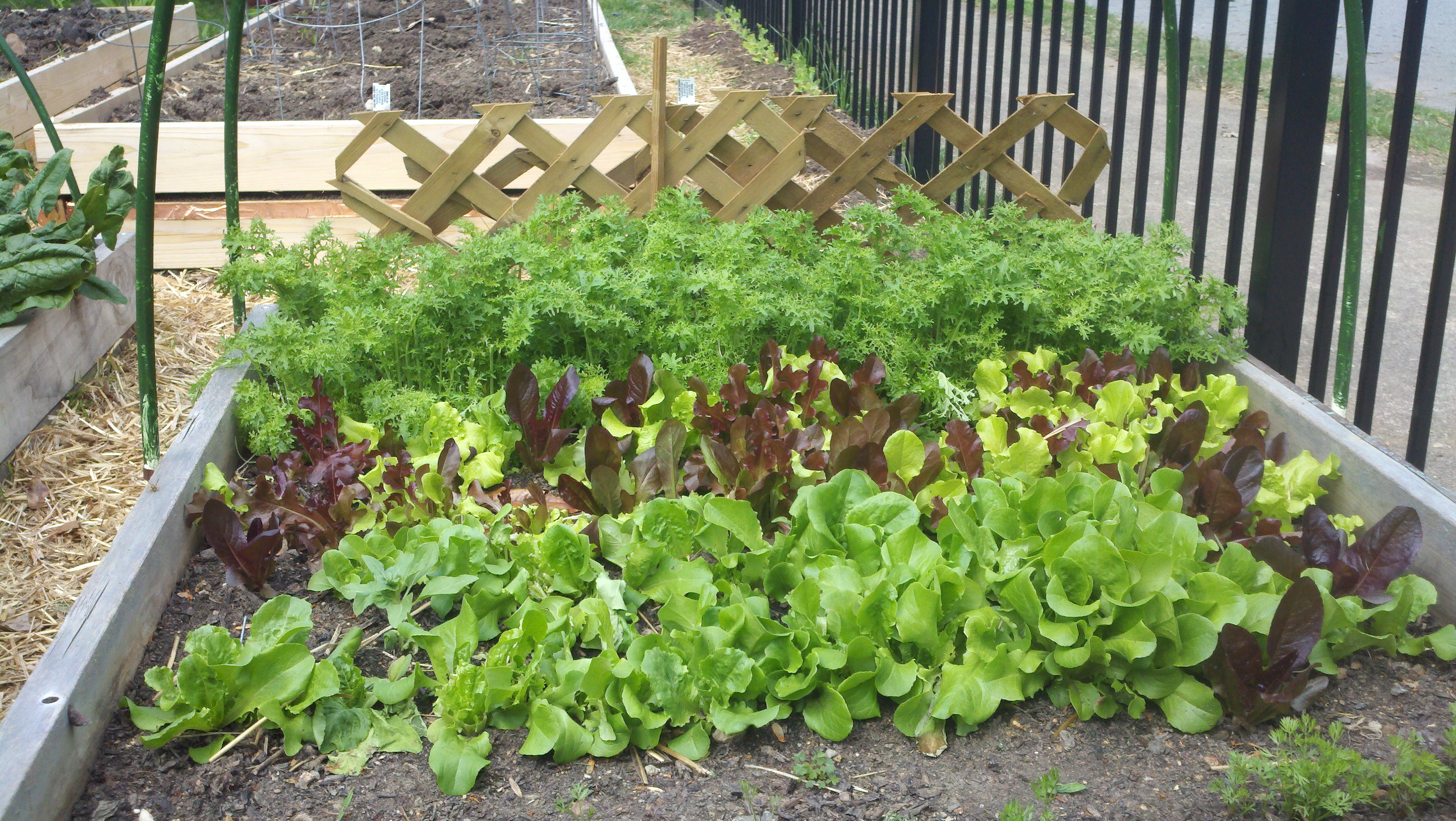I’ve been thinning these lettuce plants out and putting them in salads. The really tall plants in the back are Asian greens that are also great in salads — and I’ve used them in a couple stir-frys.