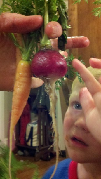 My boys love weighing our garden veggies on this old scale that belonged to my grandmother. It’s a trick great way to get them helping out in the kitchen when Preschooler Witching Hour is nigh (’round about 5:15pm).