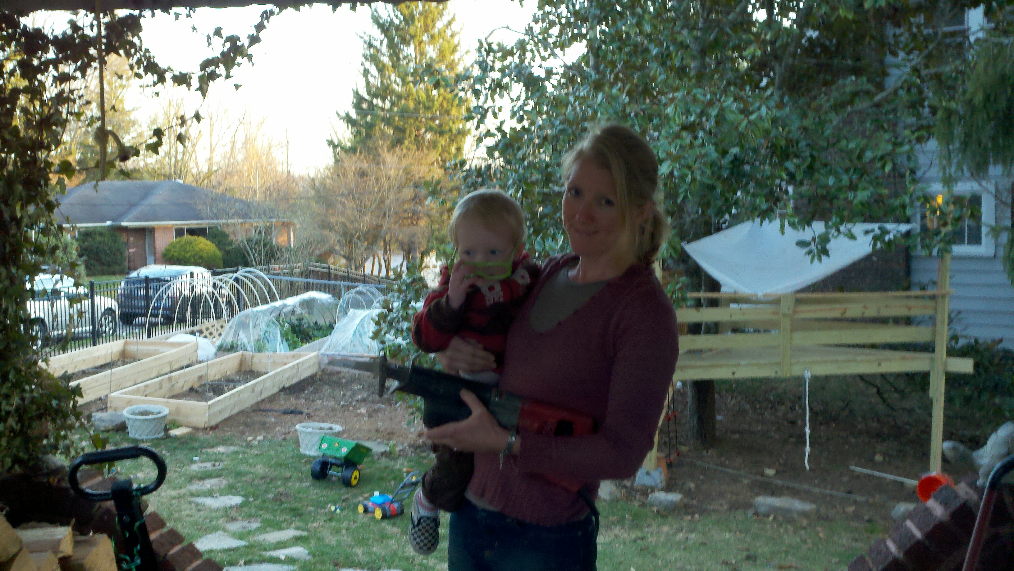 Now that my almost-two year old has recently liked sleeping (hallelujah), my brain is working better,  and the stretches of time when I can get things accomplished are starting to, well, stretch out.  So I’ve decided to expand the garden with a few more raised beds.  And instead of ordering kits again,  I attempted a DIY/DIWLOHFB project to build the beds on my own.