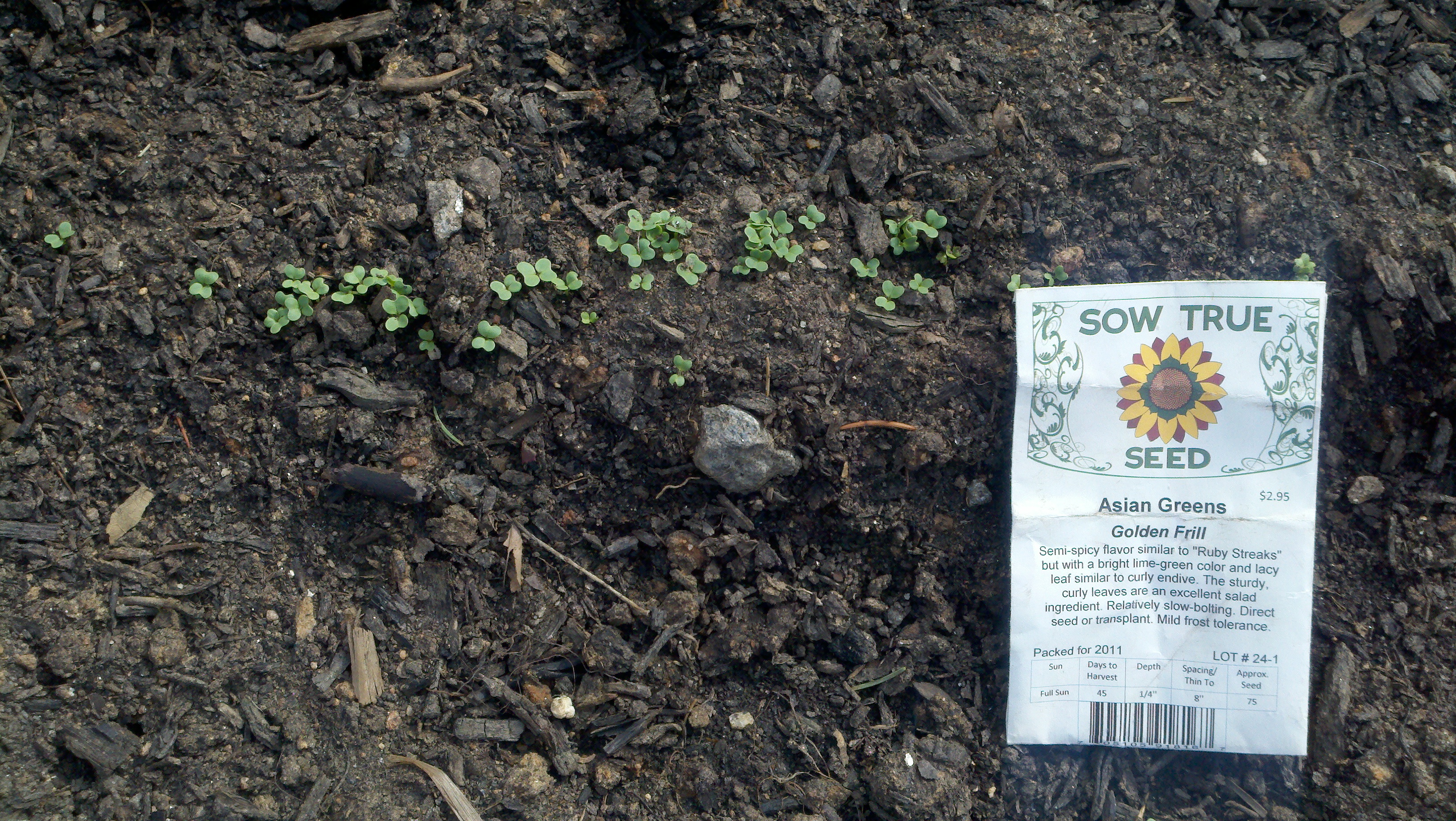 Here are some of my Sow True seeds that I planted a week ago in one of the raised beds –woo-hoo!