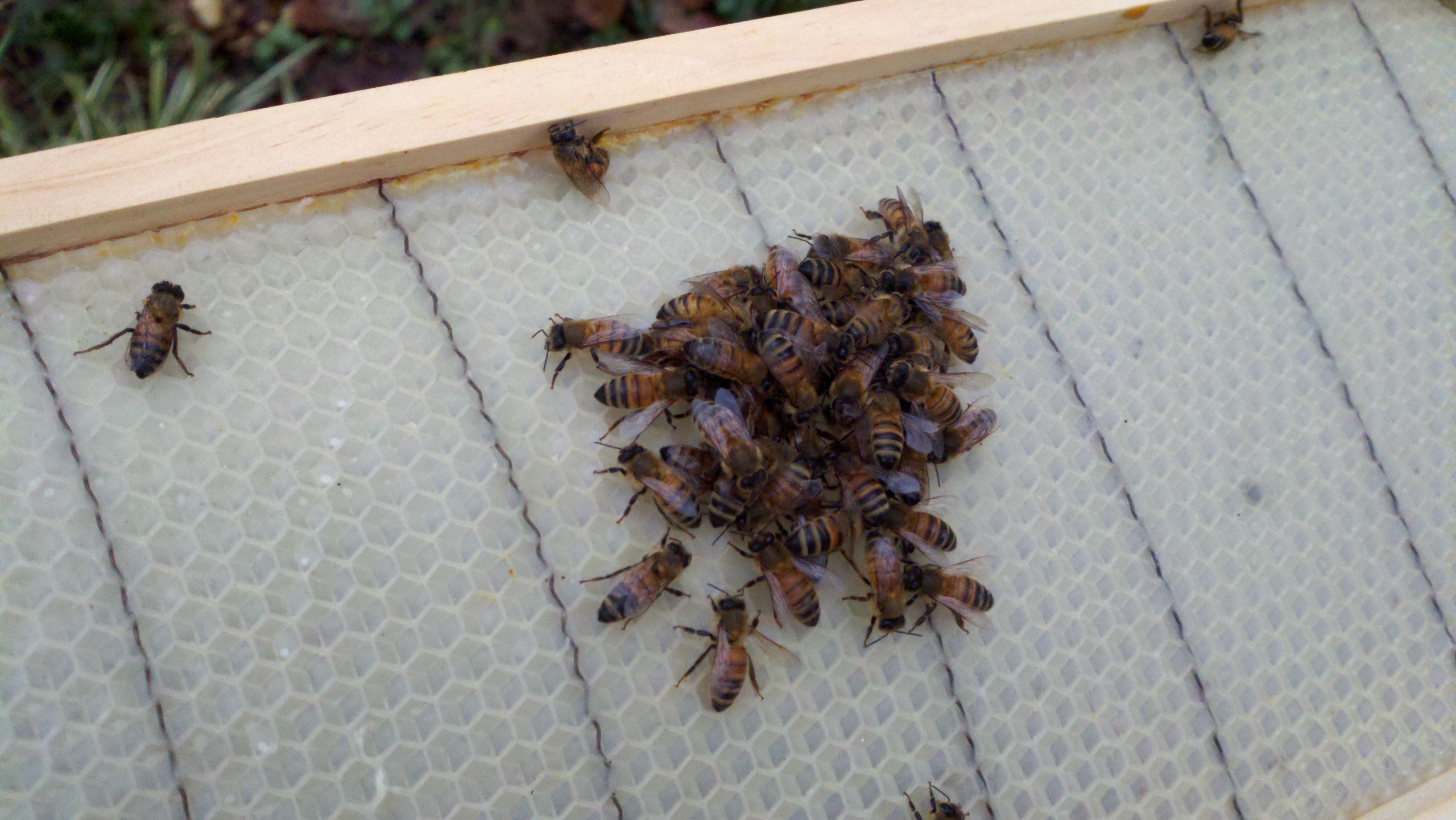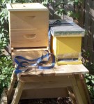 In an effort to keep things simple, we decided to use the more common size bee box to transfer them into (with 10 longer frames instead of 8 shorter as I’d had previously).